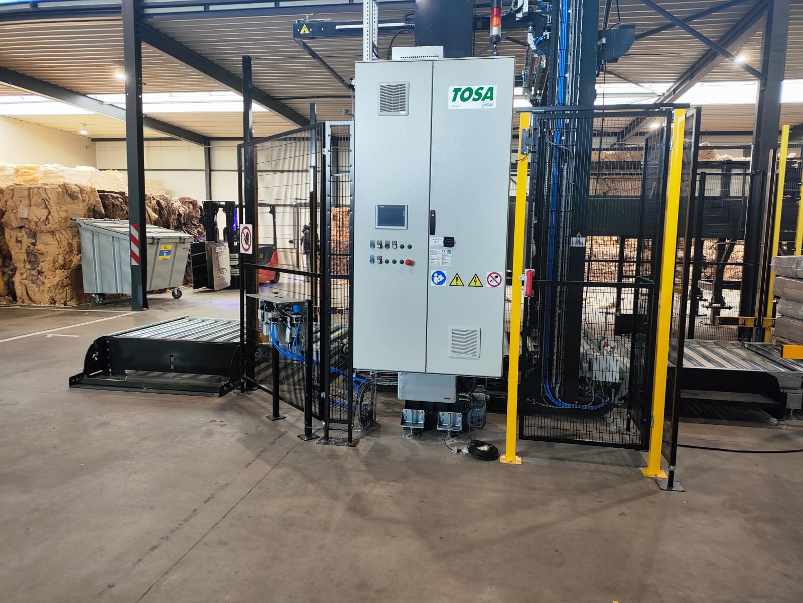 De kern van de verpakkingslijn is de automatische balenpers Essegi PC350, die tot 220 stevige, vlakke balen per uur verwerkt. Vervolgens neemt de Winner 300 ER robotpalletiser het over die de balen stapelt aan een tempo van 20 pallets per uur.